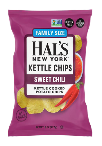 Hal's New York Kettle Cooked Potato Chips, Sweet Chili, 8oz X-Large Bags (Pack of 12)