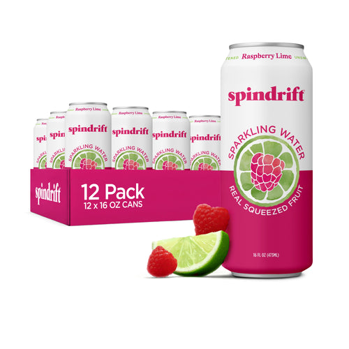 Spindrift Fruit Flavored Sparkling Water, Raspberry Lime, 16oz (Pack of 12)