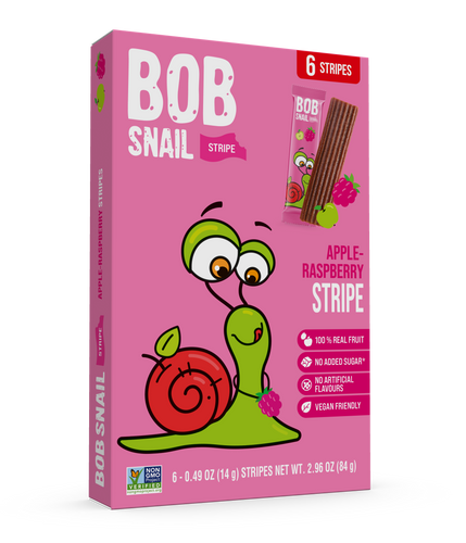 BOB SNAIL Fruit Leather Stripes, Apple Raspberry, 0.49oz - 6 Stipes Per Box