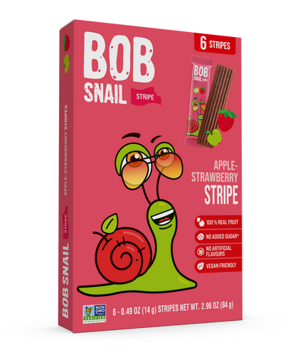 BOB SNAIL Fruit Leather Stripes, Apple Strawberry, 0.49oz - 6 Stipes Per Box
