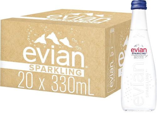 Evian Natural Sparkling Carbonated Water, 11.1 Fl Oz Glass Bottles (Pack of 20)