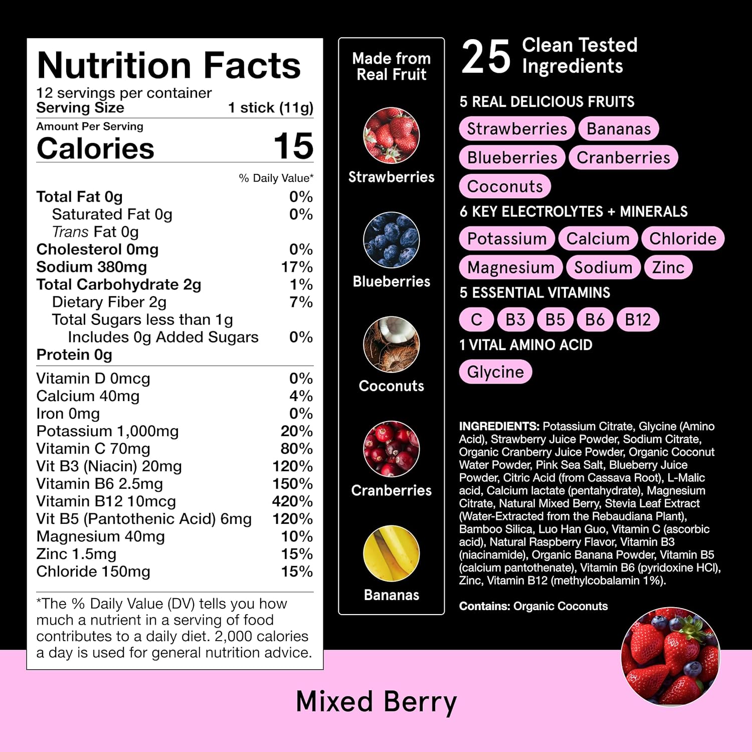 - Clean, Functional Ingredients: Each stick includes 6 key electrolytes + minerals, 5 essential vitamins, 5 real fruits, and 1 amino acid — engineered to power your hydration, recovery, and everyday performance.