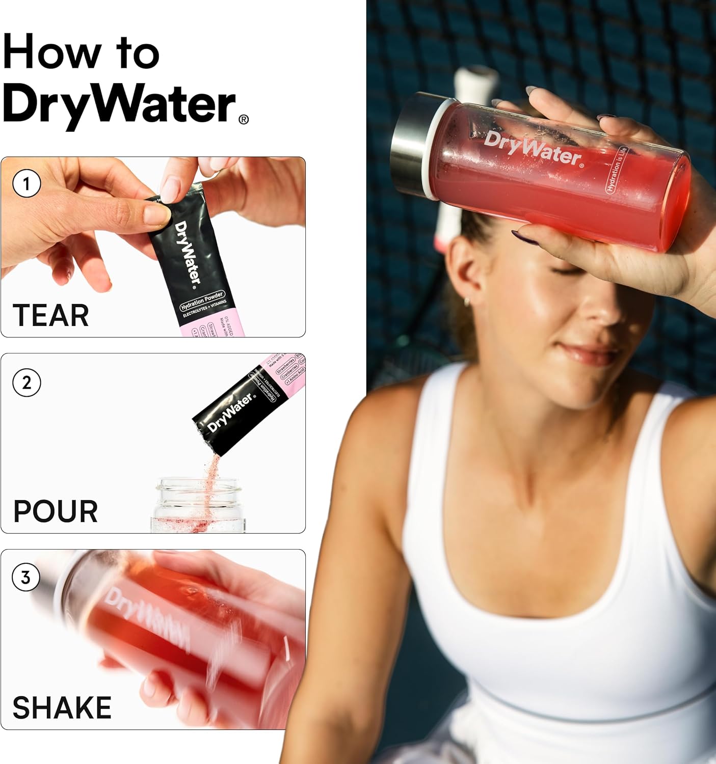 The DryWater Difference: Take hydration to the next level with DryWater. Clean, delicious packs packed with electrolytes, vitamins, and minerals for full cellular support.
