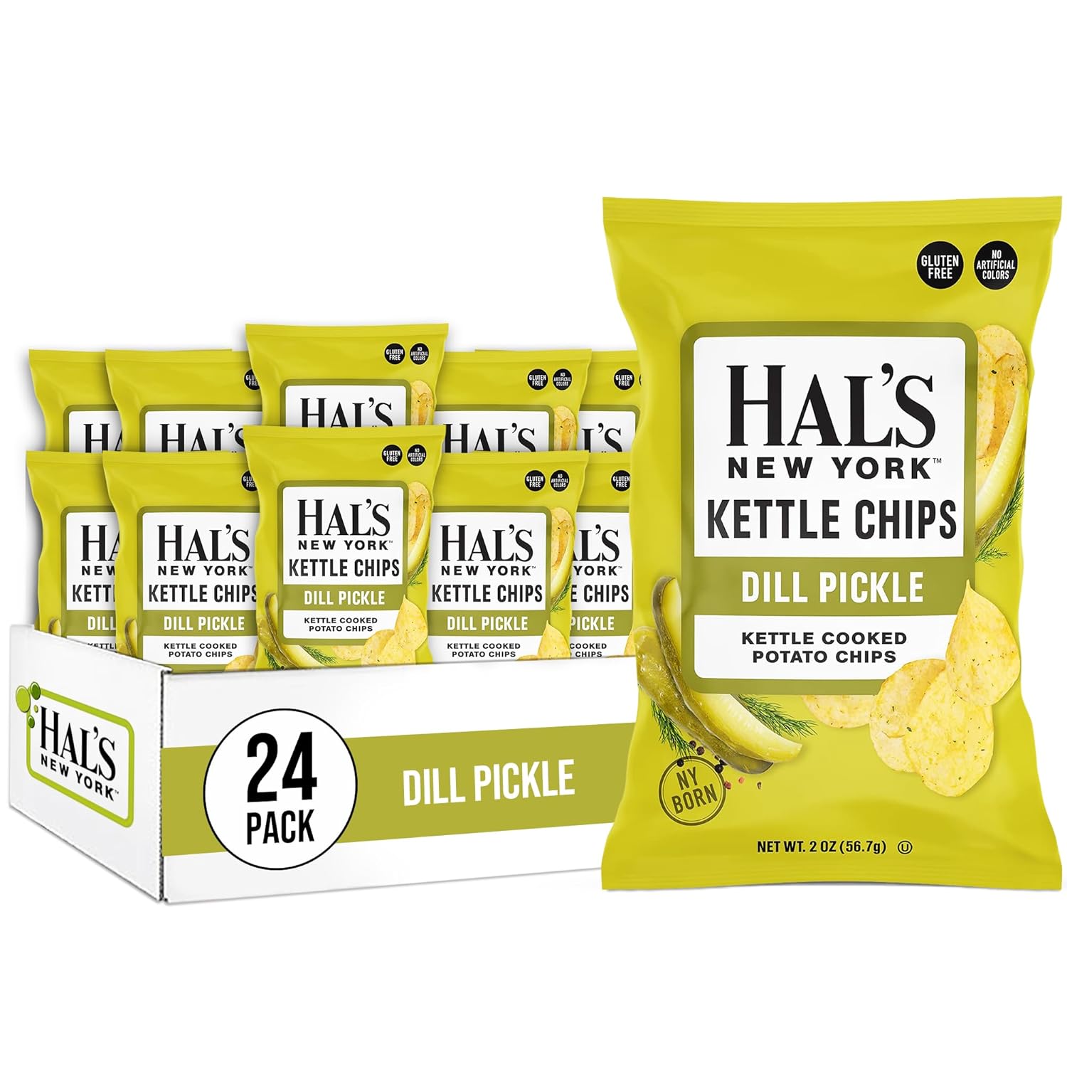 Hal's New York Kettle Cooked Potato Chips, Dill Pickle, 2 oz (Pack of 24)
