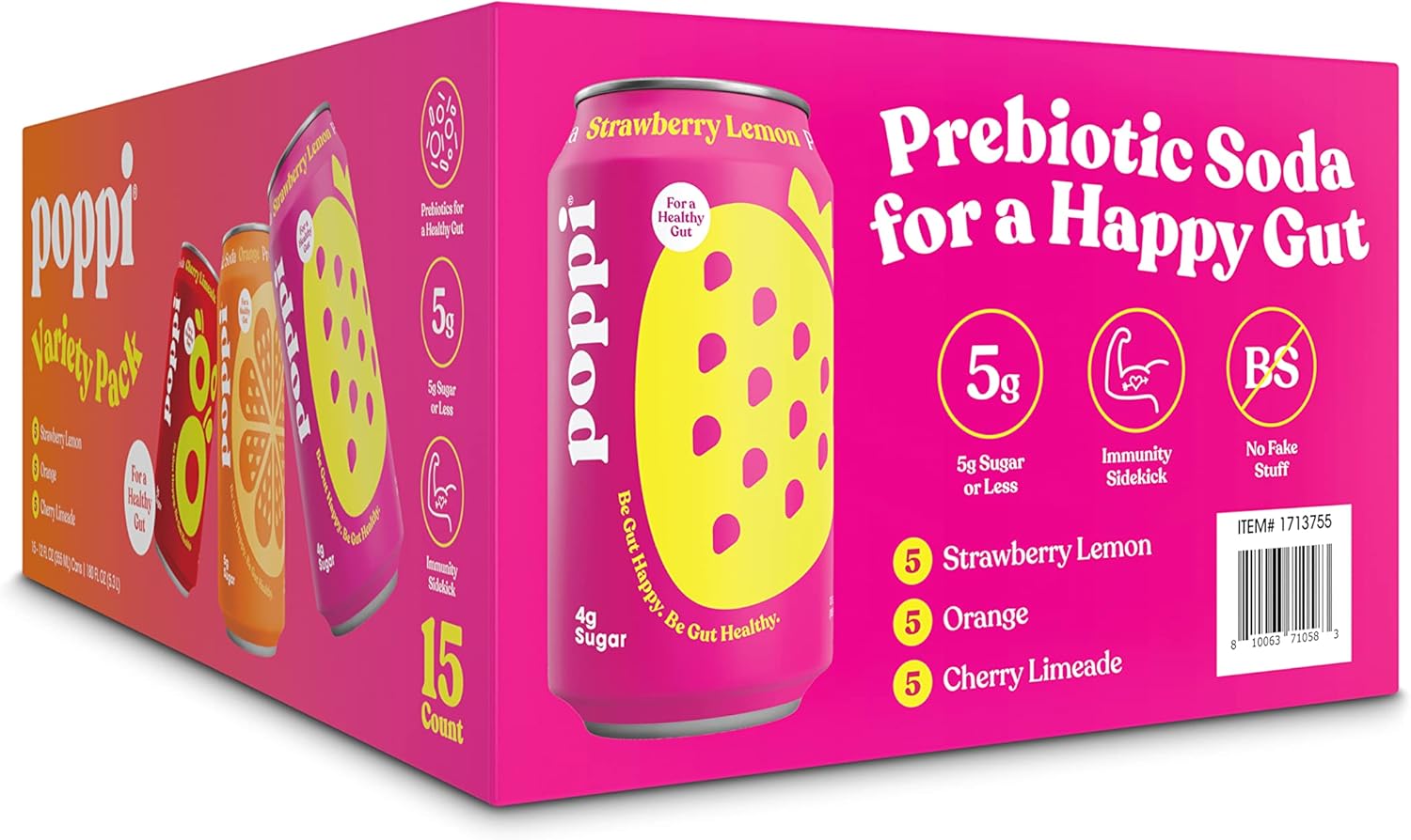 Founded by husband-and-wife duo Allison and Stephen Ellsworth and based in Austin, TX, poppi combines 5g sugar, ingredients you can love, and prebiotics for a deliciously refreshing, full-of-flavor soda. With the help of an investment on Shark Tank, poppi has gone from farmers’-market-favorite to shipping directly to your front door with Oasis Snacks. Along the way, it's made new friends like Hailey Bieber, Post Malone, Kylie Jenner, Billie Eilish, Jennifer Lopez, Olivia Munn, and more!