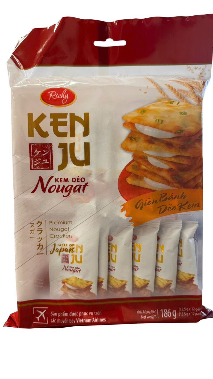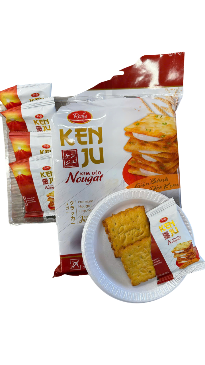 - Manufactured on a modern production line With quality ingredients, Kenju onion nougat cake (Kenju sandwiched with nougat cream) ensures food safety and hygiene.
